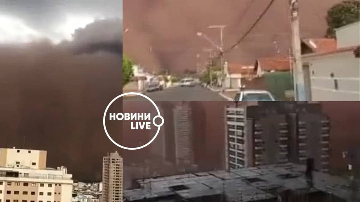 У бразильскому штаті Сан-Паулу сталася потужна пилова буря, яка нагадувала кадри з фільмів про кінець світу. Майже вся видимість була втрачена на декілька годин, а людям довелося швидко рятуватися.