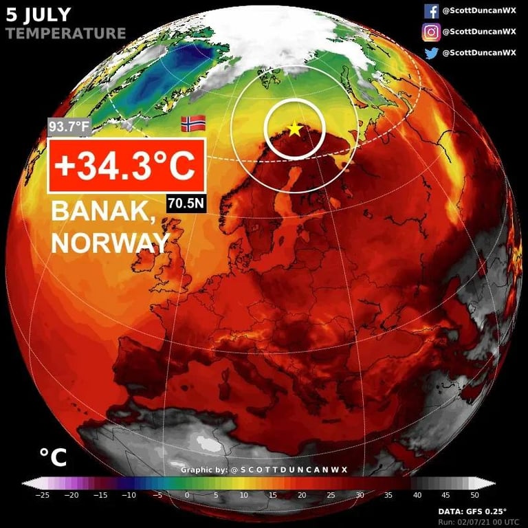 Професор метеорології австралійського університету Монаш Майкл Рідер зазначає, що високі температури на півночі Європейського континенту і в Північній Америці взаємопов'язані. Він пояснив, що тропічний мінімум в західній частині Тихого океану порушив атмосферу, створивши цим так звану хвилю Росбі. Ця хвиля поширилася на захід Канади, створивши умови для хвилі тепла. Це, в свою чергу, спровокувало нову хвилю над Північною Атлантикою та створило умови для високих температур в північних регіонах планети.