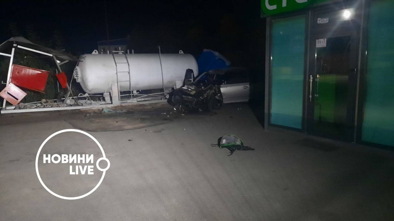 Попередньо відомо, що автівка на великій швидкості на Т-подібному перехресті просто поїхала прямо. Удар був такої сили, що ємність із зрідженим нафтовим газом перемістилася на декілька метрів.