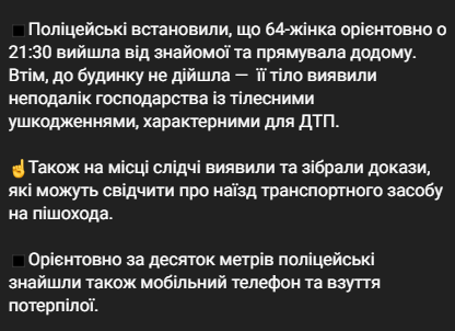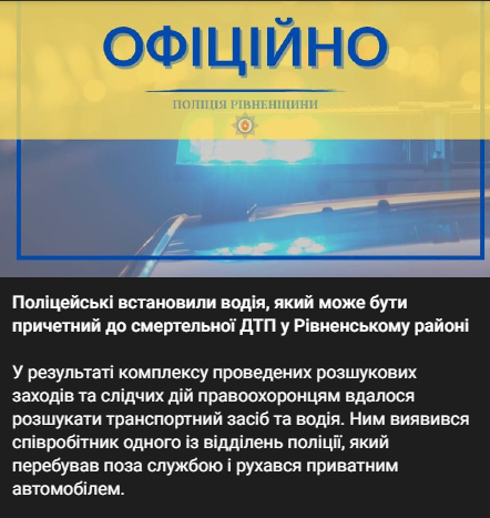 Сообщается, что трагедия произошла вечером 5 августа. Женщину же обнаружили на обочине дороги в селе Моквин бывшего Березновского района уже без признаков жизни утром 6 августа.