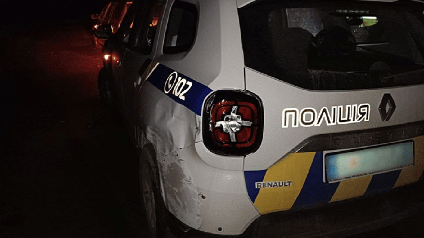 В Кременце Тернопольской области пьяный водитель разъезжал по улицам города в комендантский час. Он въехал в автомобиль полицейских и пытался скрыться.