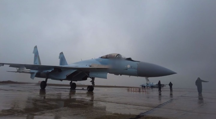 Су-35 готовится к взлету. Источник: скриншот с видео росСМИ