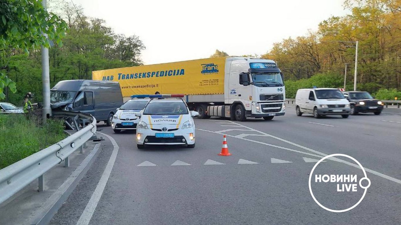 За їхньою інформацією, обидва водії рухалися в напрямку метро Академмістечко. Несподівано легковик вдарив бус, після чого той вилетів на узбіччя і вдарився в стовп. Натомість водієві Skoda вдалося зупинитися на дорозі.